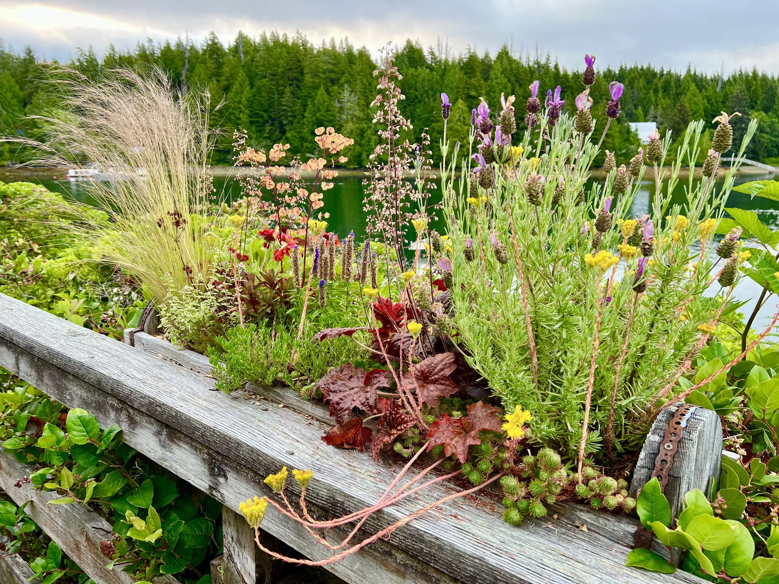 Cedar flower boxes are featured along the length of the Boardwalk. The flower boxes are built and maintained by the community, with residents and businesses handling the day to day watering and tending of the boxes adjacent to their properties