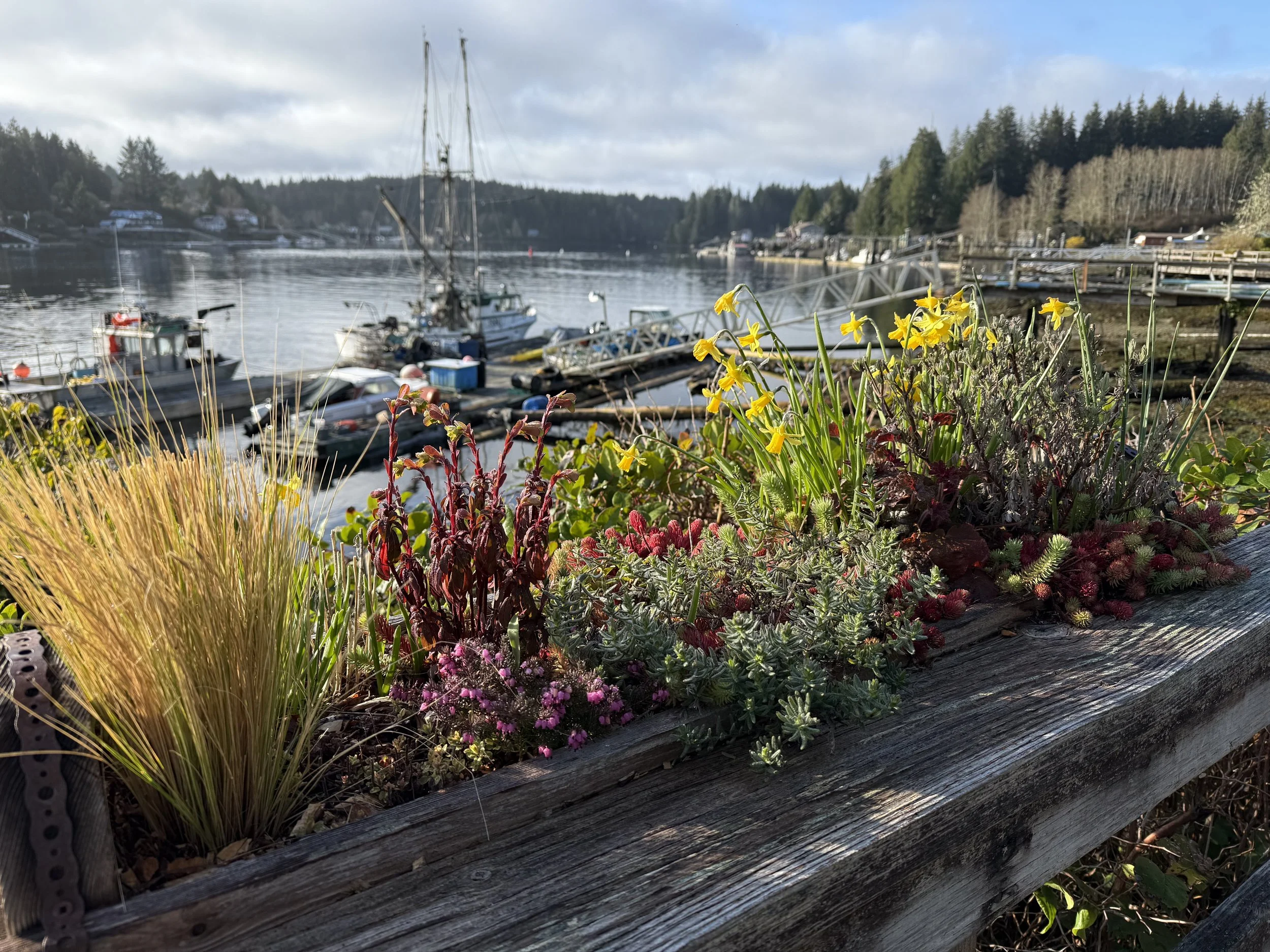 Flower boxes have long been a feature of the Bamfield Boardwalk; many of them are over 40 years old! The planters are filled with a variety of flowers and may look different throughout the year as different seasons cater to various plants.