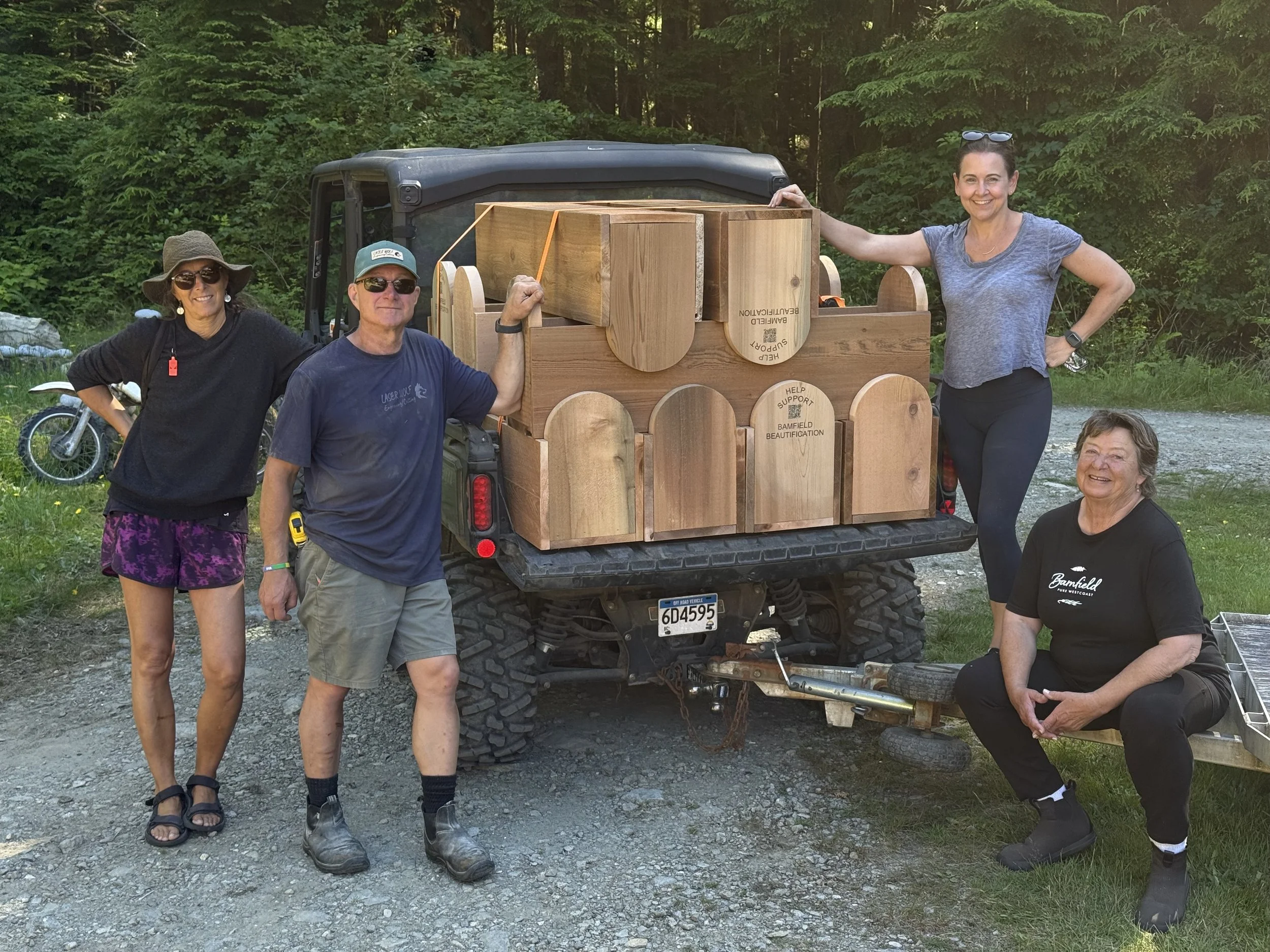The milling, assembly, lining materials, brackets, potting soil, and plants are made possible through community volunteerism and generous contributions. If you want to help Bamfield and its flower boxes, consider a small contribution to assist keeping them fabulous. Visit Help Support to see how.